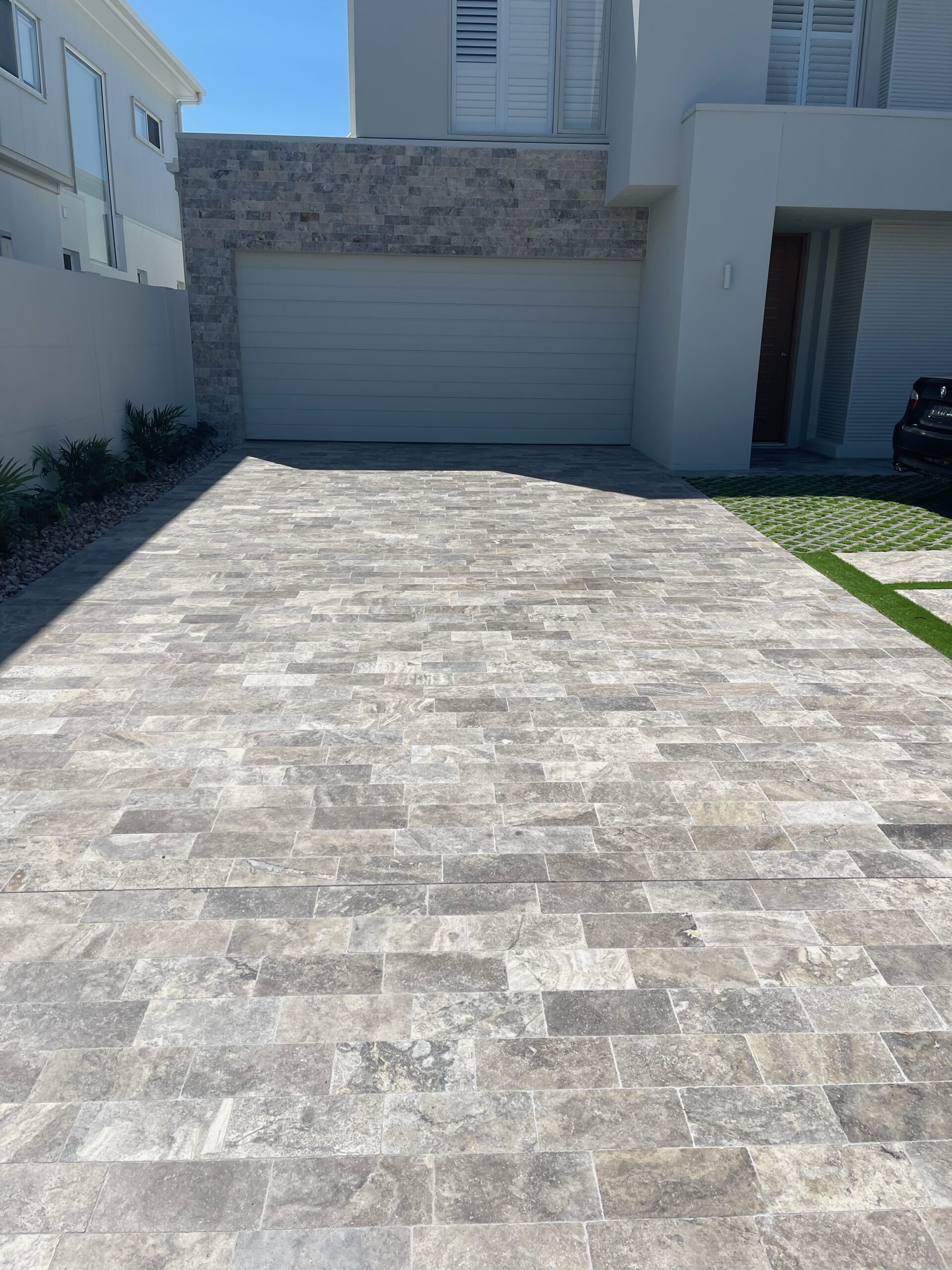 Make a lasting first impression with travertine cobblestones for your driveway. Their tumbled finish offers a non-slip surface and natural charm, while their strength and durability make them ideal for high-traffic outdoor areas like driveways and front entries.